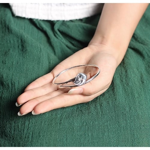 ✔ Brățara Agora din Argint 925 – design inspirat din forma unei flori de călă — organică, elegantă și cu un aer misterios.