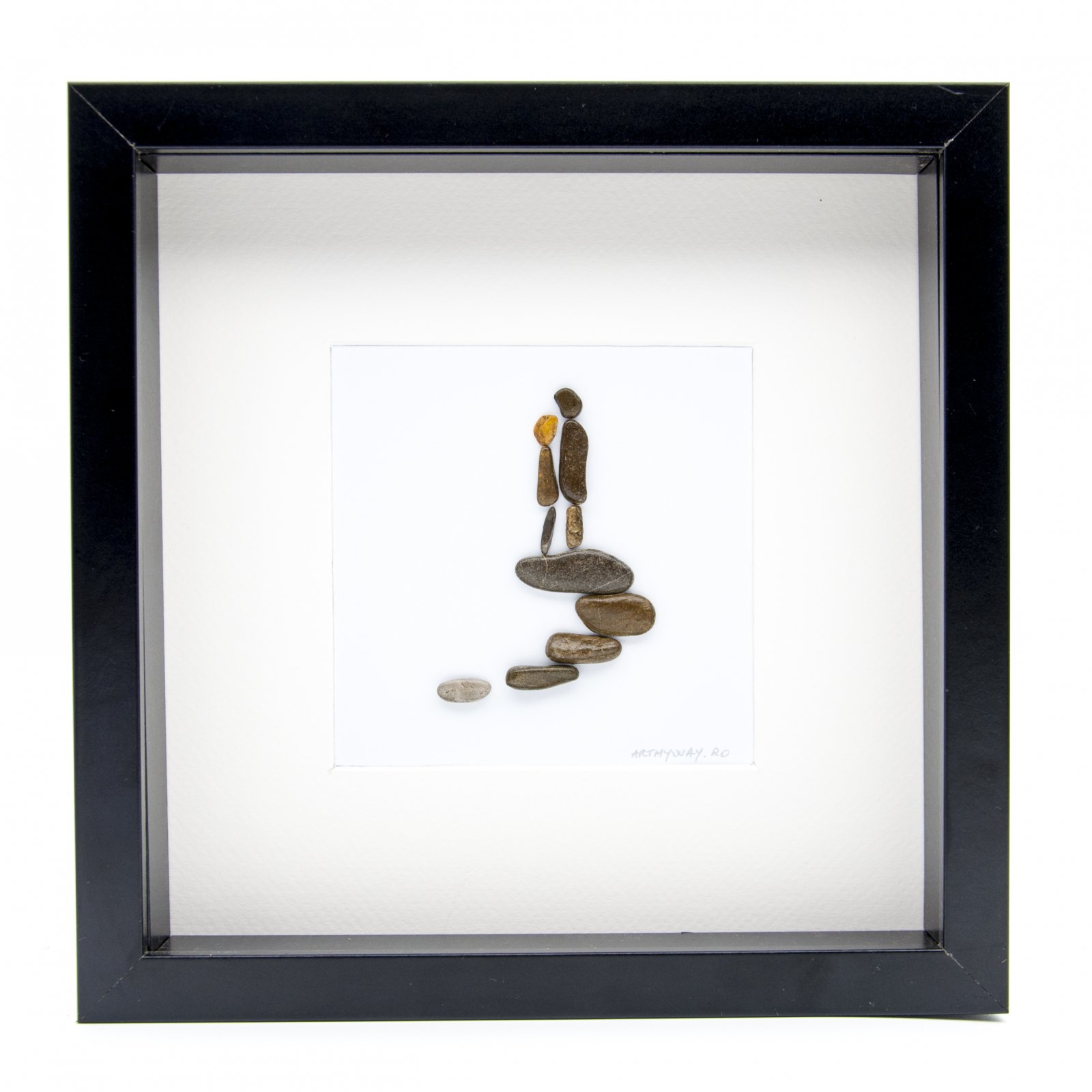 Fiecare piatră este aleasă manual, iar rezultatul final este o piesă caldă, zen și decorativă, ce poate fi personalizată special pentru destinatarul tabloului.