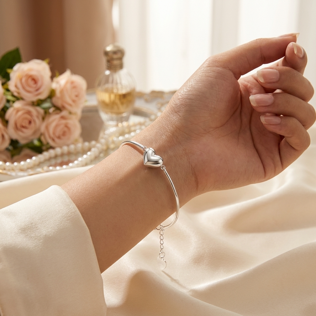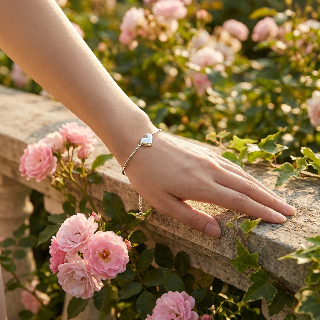 Brățara 'True Love' a fost concepută să poarte iubirea adevărată la încheietura mâinii - vizibil, cu mândrie. Realizată manual din argint 925, îmbină două părți fixe unite printr-o inimă de 9 mm, cu o extensie flexibilă care permite ajustarea lungimii între 15 și 19 cm.